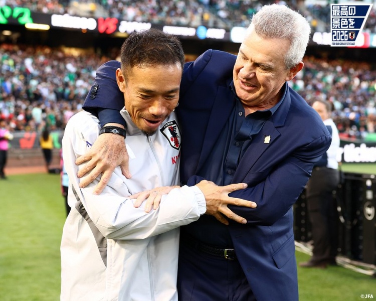 赛后日本国家队官推晒出了墨西哥队主帅阿吉雷与38岁日本队老将长友佑都的合影,照片中两人如许久不见的老友般相拥致意。