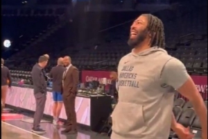 缺席18场后复出!浓眉赛前热身笑容满面 迎独行侠生涯第二战!