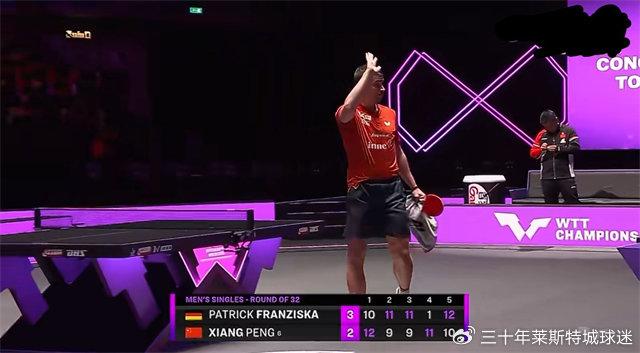 WTT澳门冠军赛,男单首轮,向鹏2-3不敌德国选手弗朗西斯卡,止步男单首轮,比分:12-10、9-11、9-11、11-1、10-12。值得一提的是,在本次男单首轮比赛中,国乒男单已经有黄友政和向鹏2人出局了。