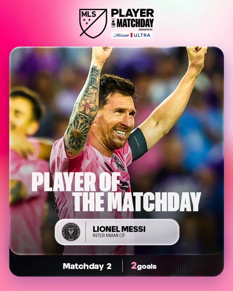 梅西此前贡献2球1助,帮助迈阿密国际让2追4,在客场4-2击败奥兰多城。在这场精彩表现之后,这位阿根廷巨星被评为美职联第二比赛日的联赛最佳球员。